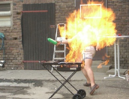 Achten Sie schon vor dem Anheizen darauf, dass der Grill standsicher und in ausreichendem Sicherheitsabstand zu brennbaren Materialien aufgestellt wurde. Oftmals erreicht auch das Gehäuse des Grills beachtliche Temperaturen, ein Standortwechsel ist dann vielfach nicht mehr möglich. Verwenden Sie keinesfalls Benzin oder andere brennbare Flüssigkeiten zum Anzünden. Benützen Sie dafür ausschließlich Sicherheitsanzünder!! Leeren Sie zum Nachzünden niemals Spiritus oder andere Brandverstärker auf die Grillkohle. Neben der entstehenden Stichflamme kann auch eine Rückzündung zu grässlichen Unfällen führen!! Grillen Sie nicht im Wald oder Waldnähe. Beachten Sie immer den Funkenflug!! Auch weiter entfernte Kleidungsstücke oder Papier etc. können durch Funken in Brand geraten. Löschen Sie die Restglut immer mit Wasser. Belassen Sie die Asche im Grill bis sie restlos ausgekühlt ist und füllen Sie sie dann erst in nicht brennbare Behälter. Halten Sie beim Grillen immer einen Feuerlöscher oder einen Eimer Wasser bereit.